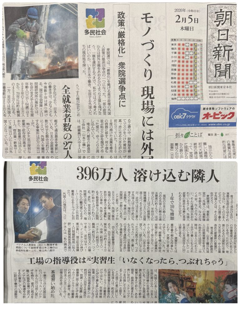 外国人とともに働く企業の実例として弊社代表がインタビューに答えています。
